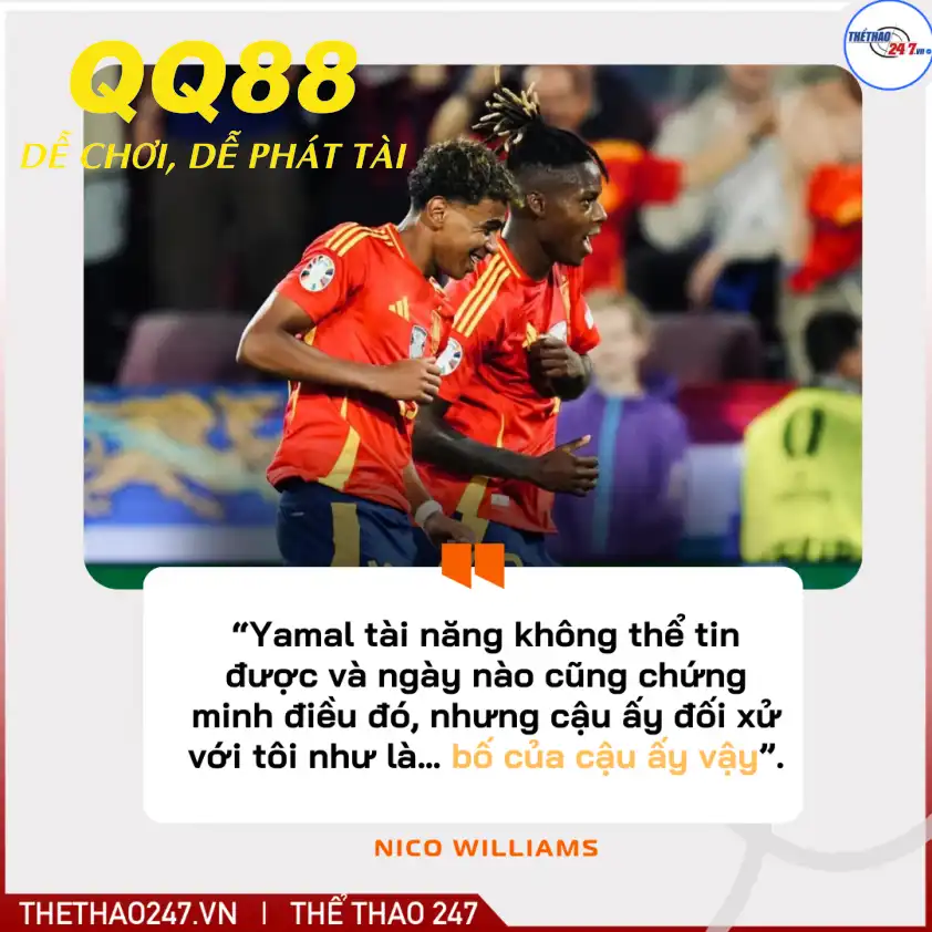 QQ88 GG – Chào anh em bet thủ! https://www.monsterwheels.io/ lại mang đến một câu chuyện cực kỳ thú vị bên lề sân cỏ đây. Lần này, tâm điểm không phải là siêu phẩm nào cả, mà là màn “tấu hài” của Nico Williams về cậu em Lamine Yamal. Cùng xem chàng tiền đạo này còn chia sẻ gì về Bilbao, tương lai và giấc mơ World Cup 2026 nhé!
